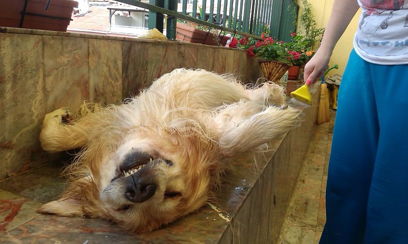 A very silent, calm, quite and humane dog. That's why I used to love to annoy him :) Here's a couple photos where I'm messing with him. If you want to see photos in which I really make him annoyed, I can send them to you. It takes a real effort to get him angry :)